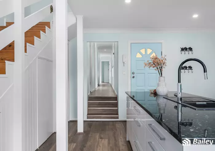 The hallway leads to three generously sized bedrooms, two of which feature built-in robes. The renovated bathroom is conveniently located nearby, offering comfort and functionality within the home.