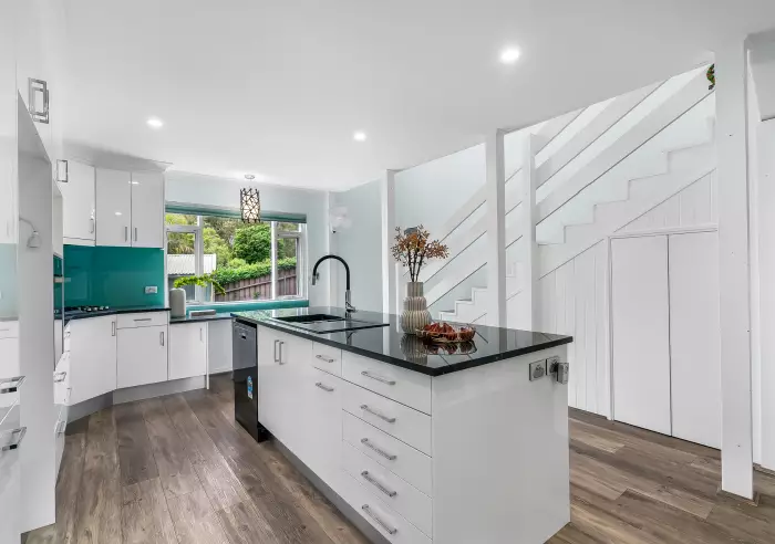 Upon entry, you are greeted by the large renovated kitchen, featuring granite bench-tops, ample bench & cupboard space, and quality appliances. Adjacent, is the convenient dining room, ensuring meal preparation is a pleasure.