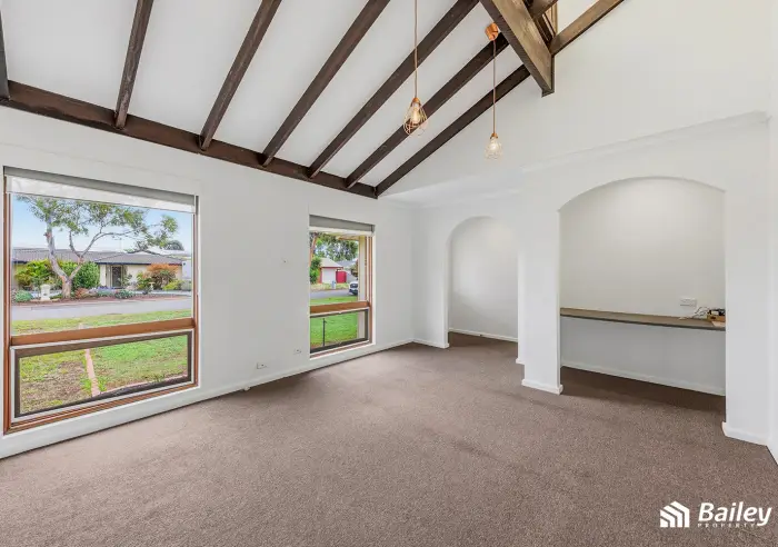 Welcomed into an open lounge room with high raked ceilings and a large picture window that captures an abundance of natural light. A built-in opening and desk provides the perfect space for those who work from home.